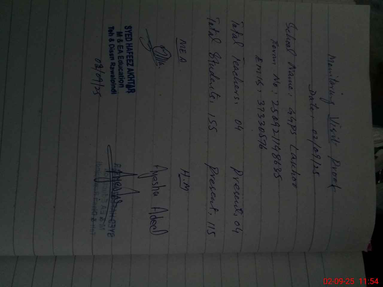 | Monitoring Date: 02-09-2025 | Start Time: 02-09-2025 11:33 AM | End Time: 02-09-2025 11:58 AM | Name of MEA: Sy**** Ha**** Ak**** | |