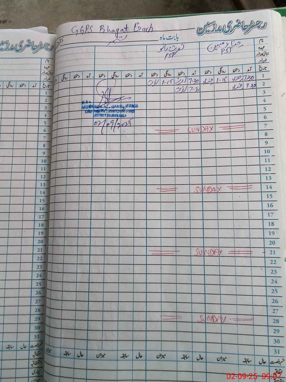 | District: GUJRANWALA | Tehsil: GUJRANWALA SADAR | Markaz: GUJRANWALA SADAR 7 - FEMALE | Level: Primary | |