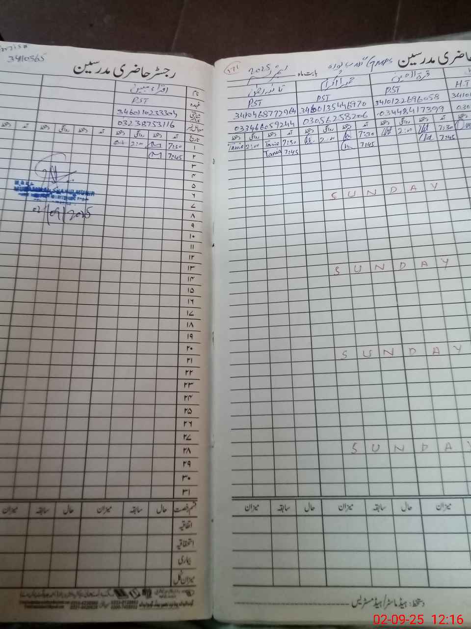 | Name: Qa**** Ra**** Bu**** Designation: (School Headmaster's/Headmistress's) PST/PTC/JV Phone/Cell Number: 03**** |