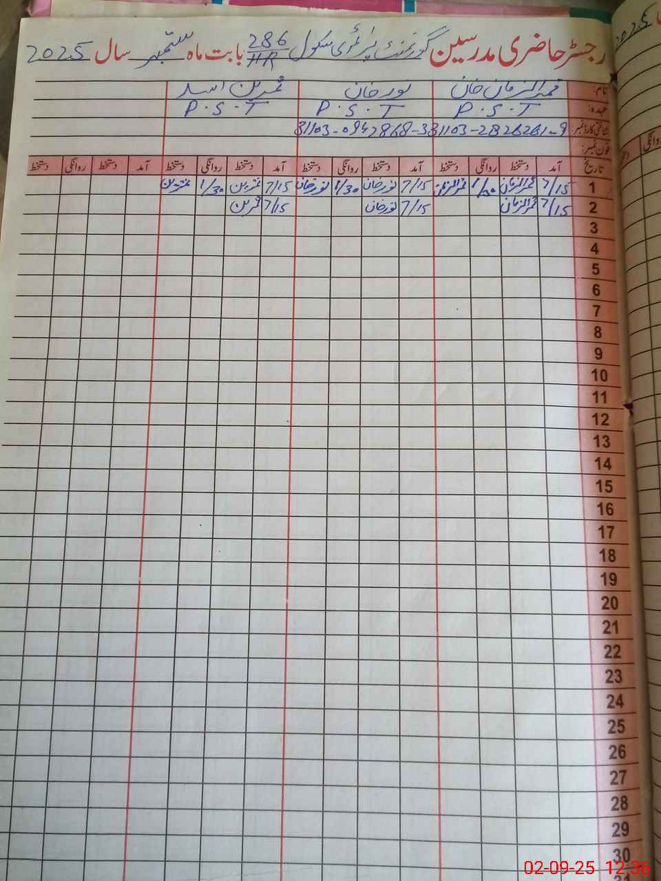 | Name: QA**** ZA**** Designation: (School Headmaster's/Headmistress's) PTC/JV Phone/Cell Number: 03**** |
