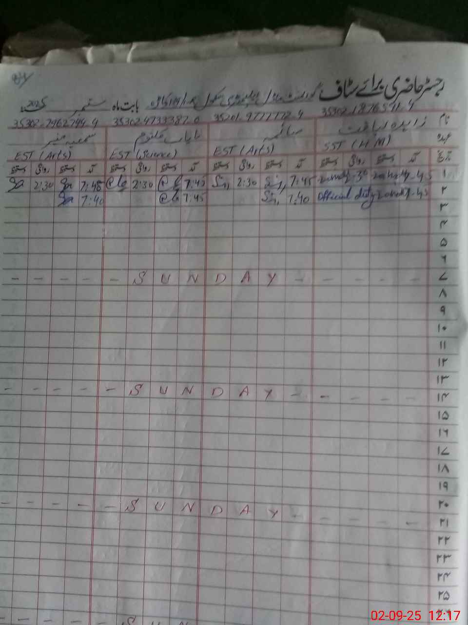 | Name: Za**** Li**** Designation: (School Headmaster's/Headmistress's) SST Phone/Cell Number: 03**** |