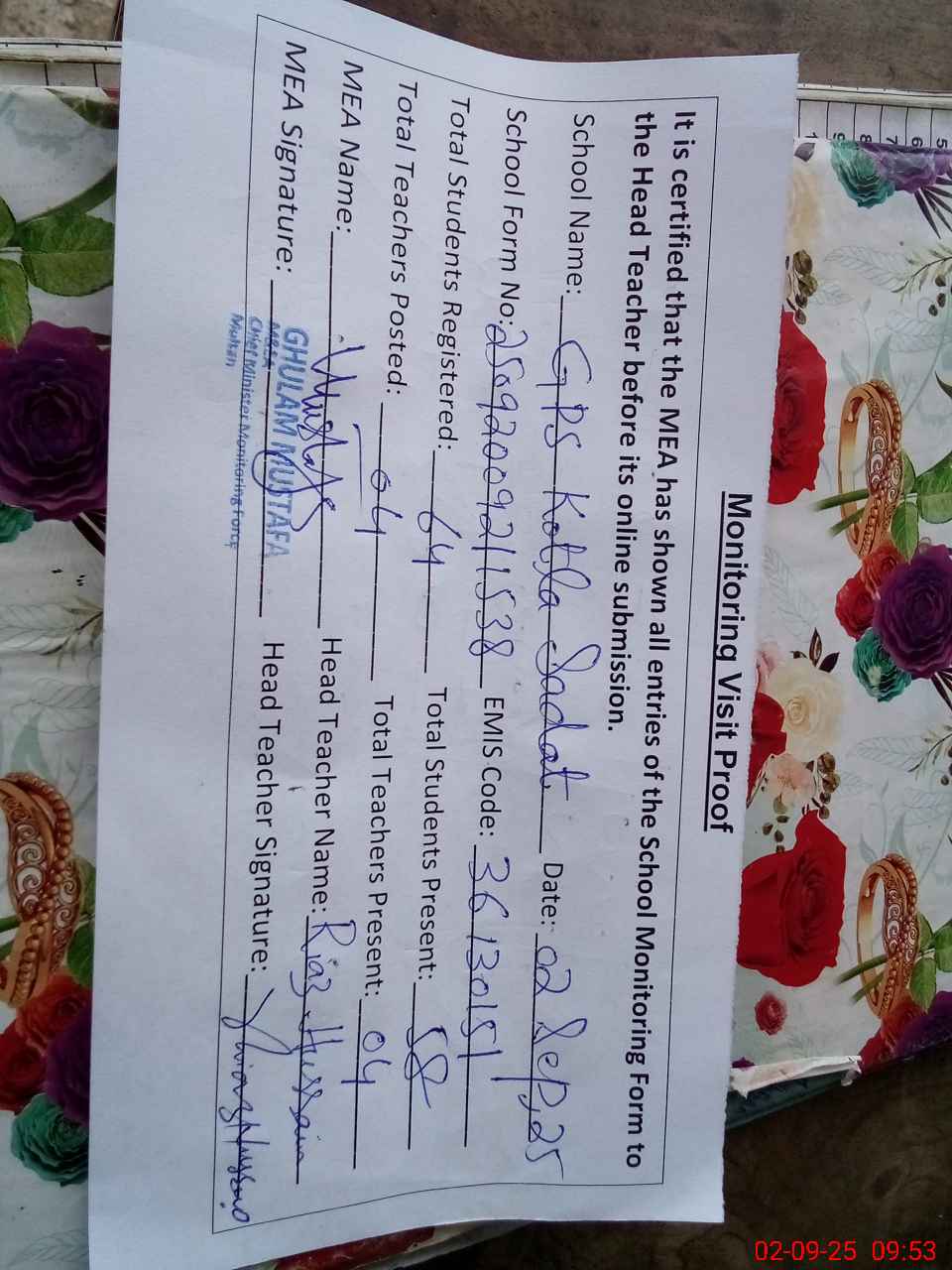 | EMIS Code: 36130150 | Name of School: GPS KOTLA SADAT | |||
