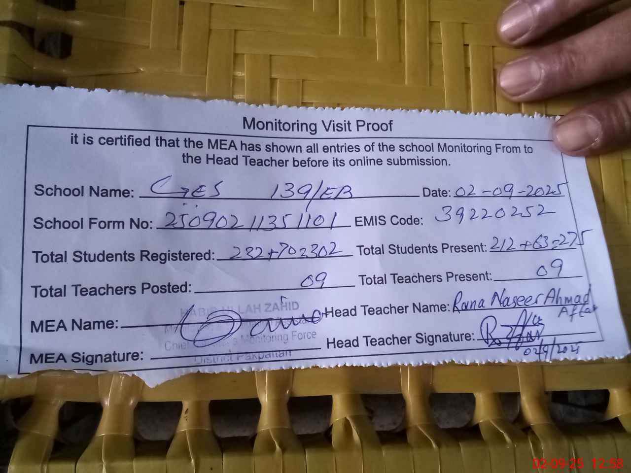 | EMIS Code: 39220252 | Name of School: GES CHAK NO 139 EB | |||