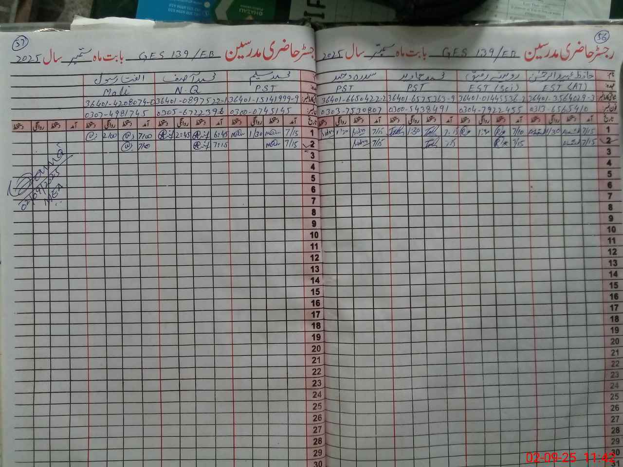 | Name: RA**** NA**** AH**** AF**** Designation: (School Headmaster's/Headmistress's) SST (SCIENCE) Phone/Cell Number: 03**** |