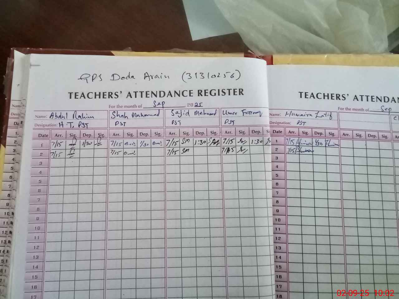 | Name: AB**** RA**** GH**** Designation: (School Headmaster's/Headmistress's) PST Phone/Cell Number: 03**** |