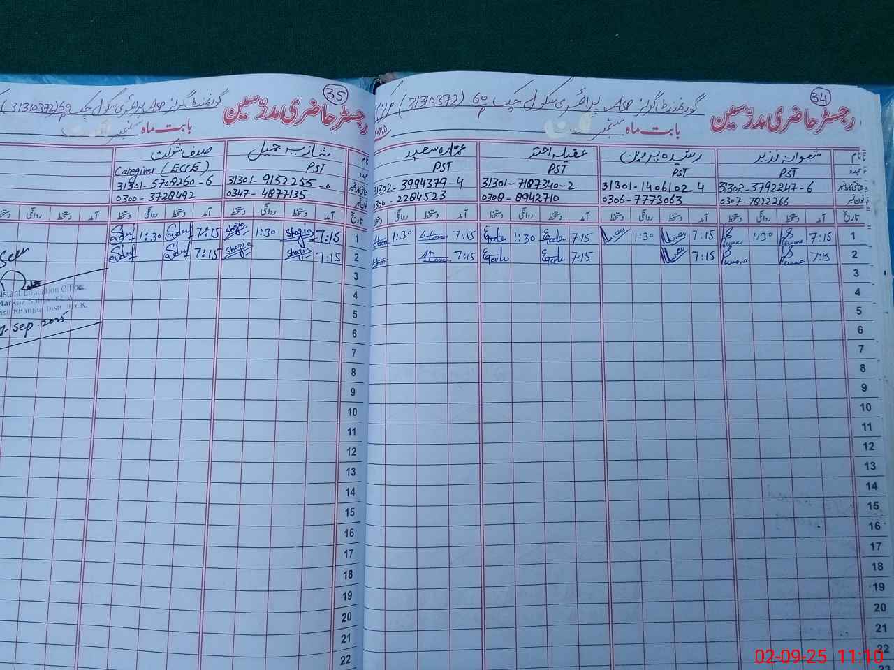 | Name: Sh**** Na**** Designation: (School Headmaster's/Headmistress's) PST Phone/Cell Number: 03**** |