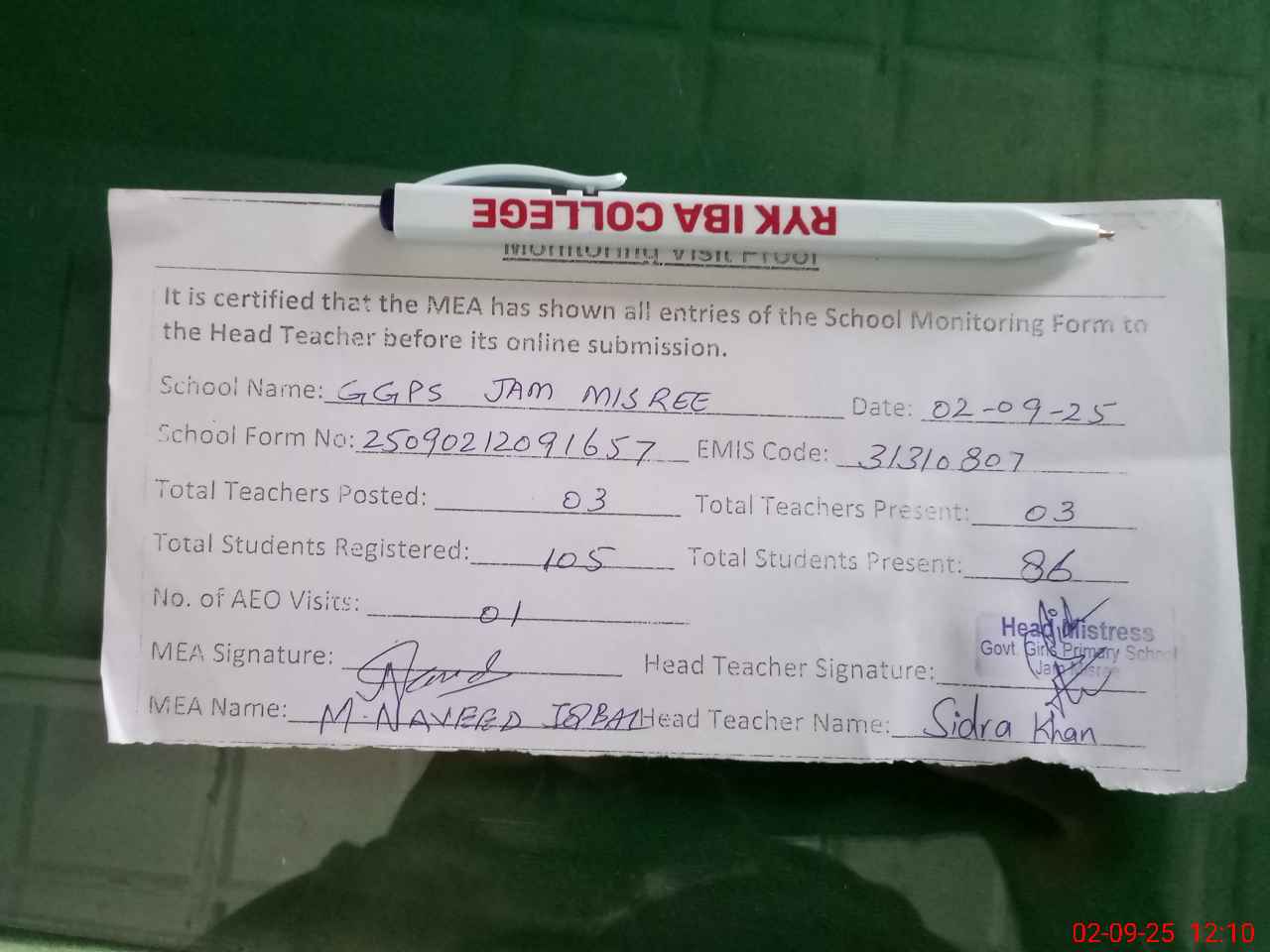 | EMIS Code: 31310807 | Name of School: GGPS JAM MISREE | |||
