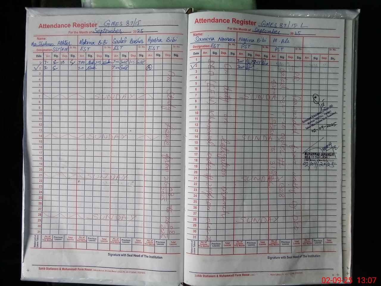 | Remarks (Use Separate Page if Required): AYESHA BIBI EST SC FOUND UN AUTHORISED ABSENT FROM DUTY NO APPROVED STUDY LEAVE IS AVAILABLE FROM 26 AUGUST 2025 TO 25 AUGUST 2026 NO AEO VISIT IN THE MONTH OF MAY 2025 FTF RECORDS NOT MAINTAINED FIVE TOILETS IN BOYS PORTION ARE BLOCKED AND NON FUNCTONAL ELECTRICITY AND DRINKING WATER ALSO NOT AVAILABLE IN BOYS PORTION ONLY ONE HAND WASHING POINT IS WITH SOAP REMAINING ALL HAND WASHING POINTS ARE WITHOUT SOAP FORMS D4 FOR DISTRIBUTION OF BOOKS FOR 2025 TO 2026 ARE NOT AVAILABLE LESSON PLANS ARE NOT AVAILABLE | |||||