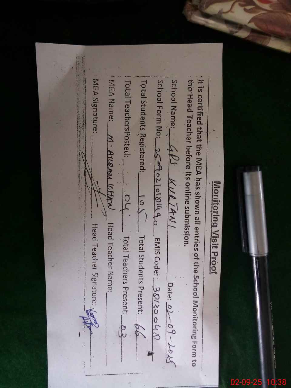| EMIS Code: 38130048 | Name of School: GPS KURTANI | |||