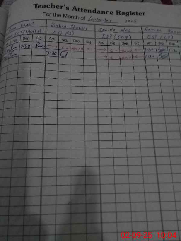 | Remarks (Use Separate Page if Required): Pst saliha bibi posted in and she is on maternity leave but not included in tab list | |||||