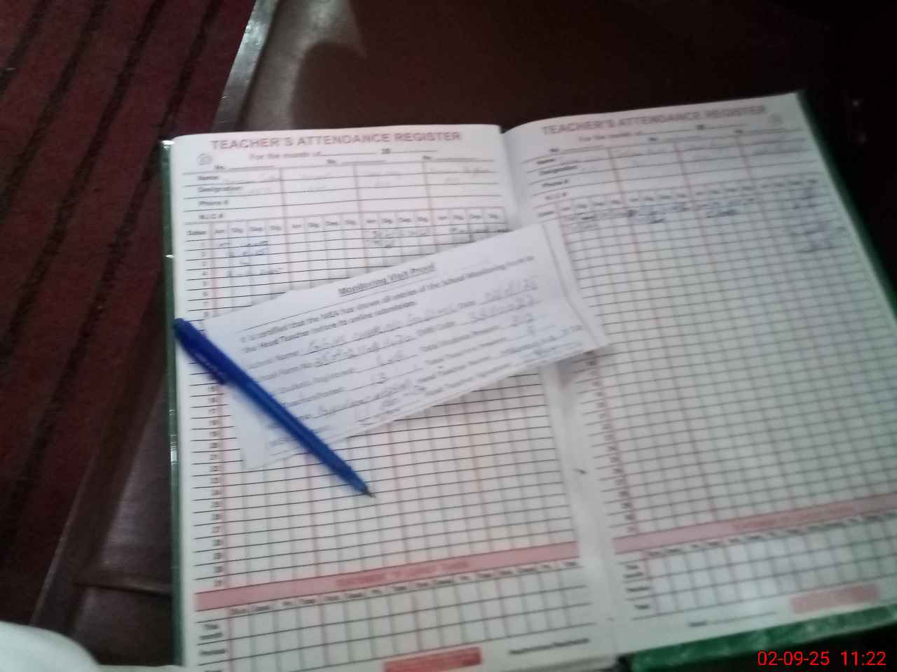 | Attendance Register | Head Teacher | MEA with School | Visit Proof |