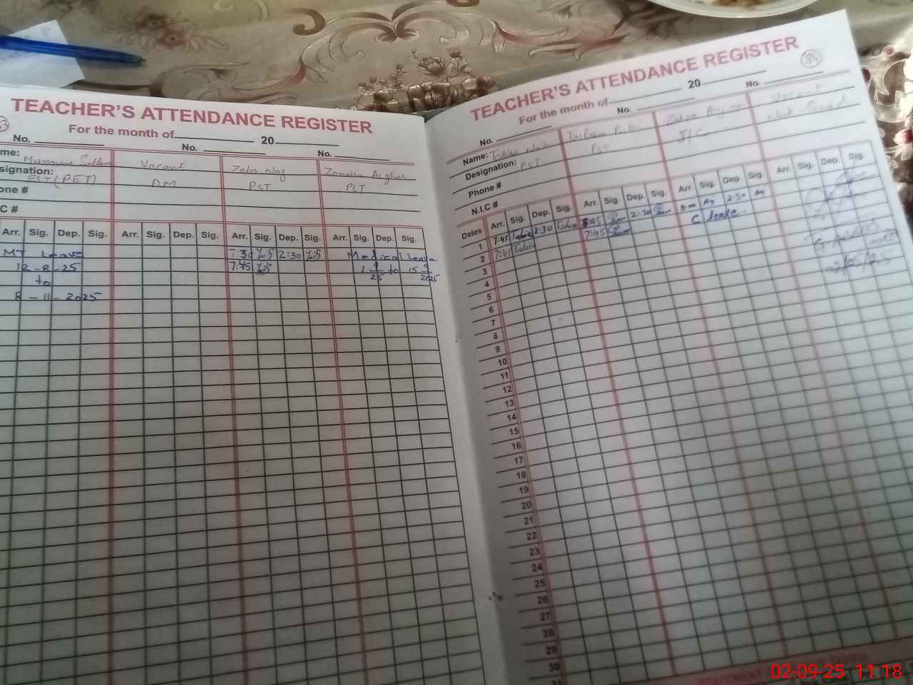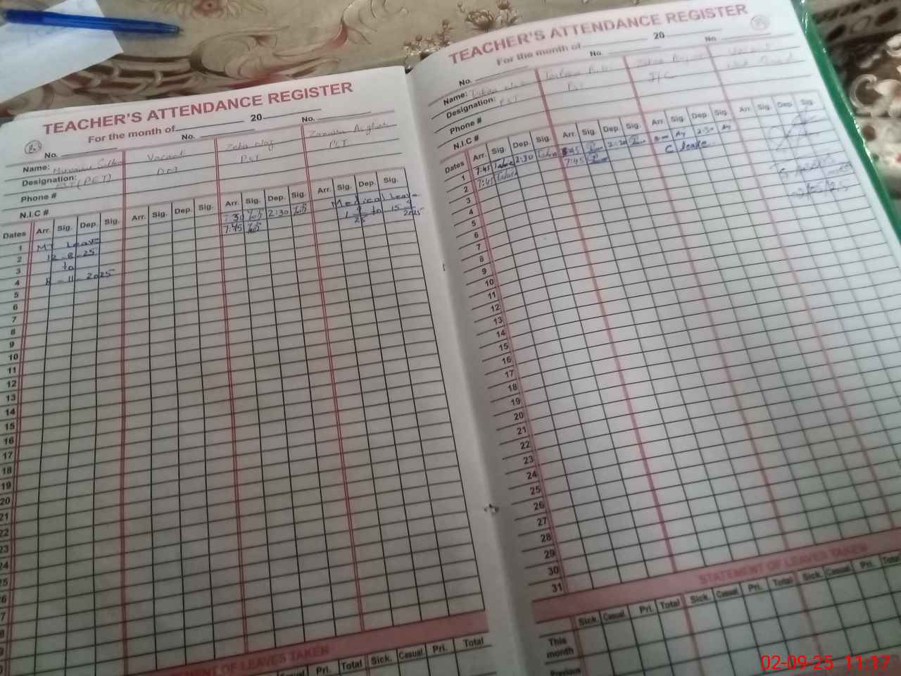 | CNIC | Full Name | Designation | R/C | Absence During Last Calender Month |
