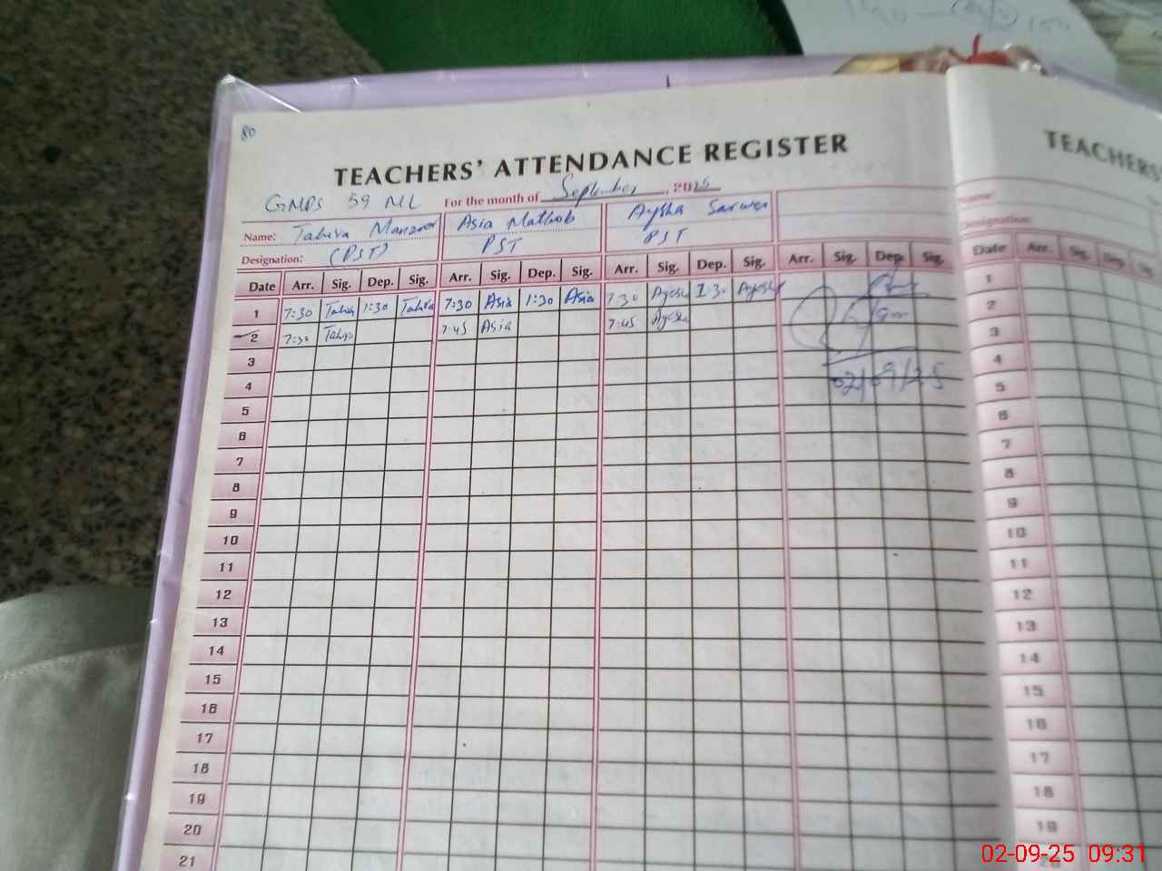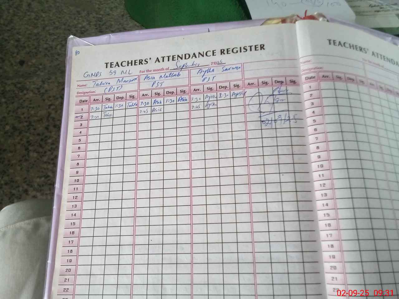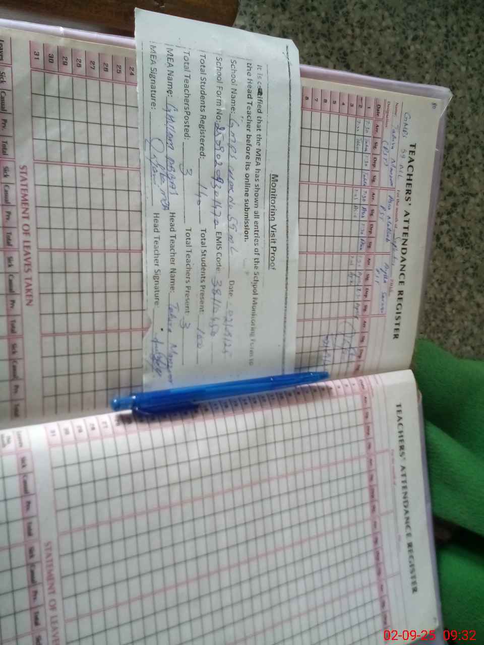 | Attendance Register | Head Teacher | MEA with School | Visit Proof |