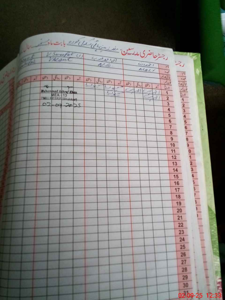 | CNIC | Full Name | Designation | R/C | Absence During Last Calender Month |