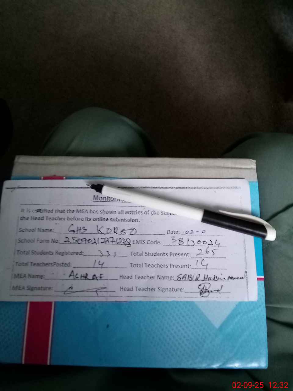 | Attendance Register | Head Teacher | MEA with School | Visit Proof |