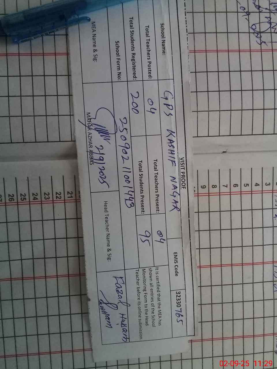 | EMIS Code: 32330765 | Name of School: GPS KASHIF NAGAR | |||