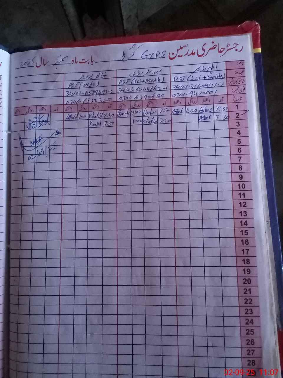 | Name: AT**** NA**** Designation: (School Headmaster's/Headmistress's) PST Phone/Cell Number: 03**** |