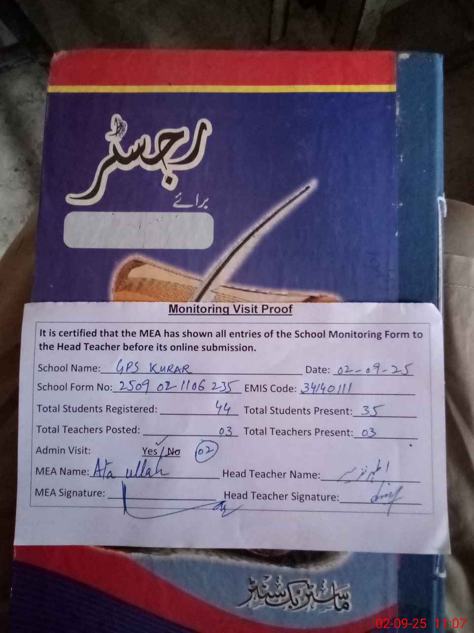 | EMIS Code: 34140111 | Name of School: GPS KURAR | |||