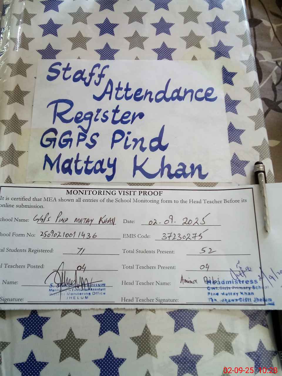 | EMIS Code: 37230275 | Name of School: GGPS PIND MATAY KHAN | |||