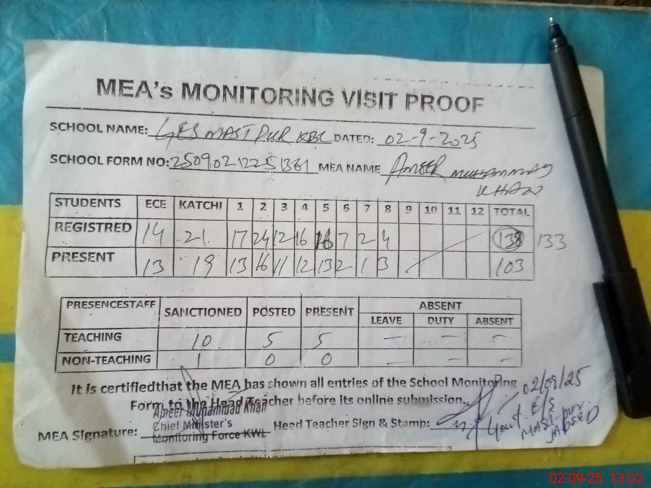 | EMIS Code: 36410176 | Name of School: GES MAST PUR JADEED, P/O BILAWAL PUR, KABIRWALA | |||