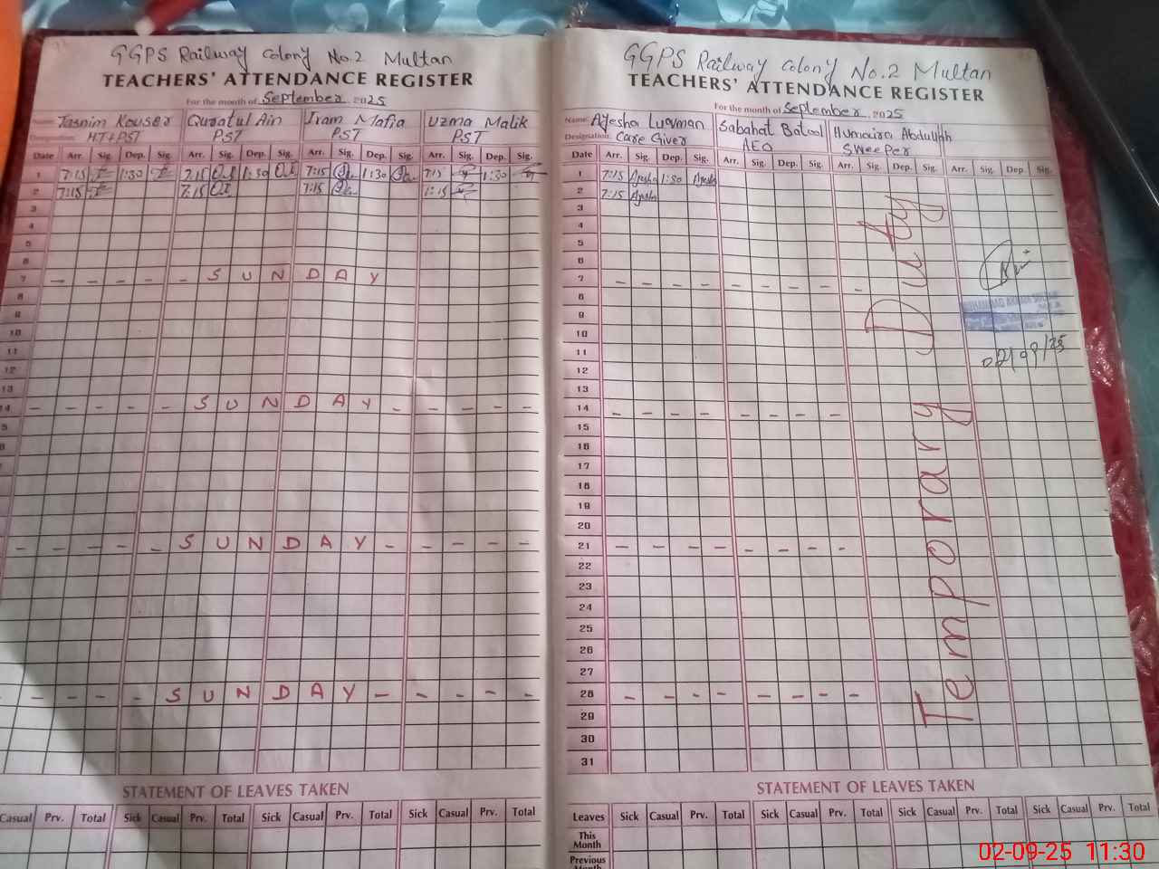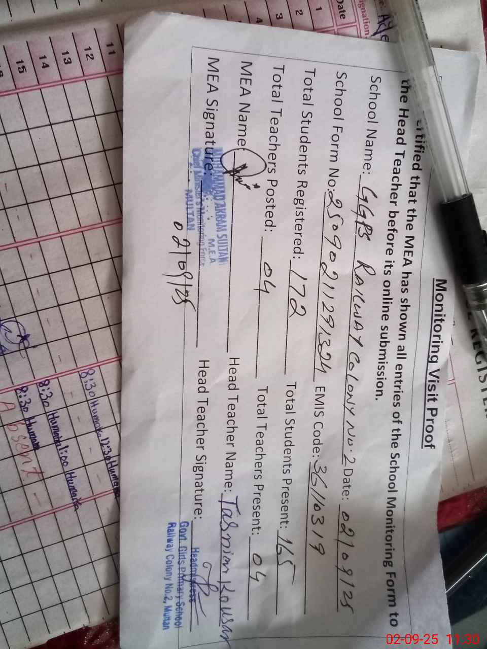 | EMIS Code: 36110319 | Name of School: GGPS RAILWAY COLONY NO: 2 | |||