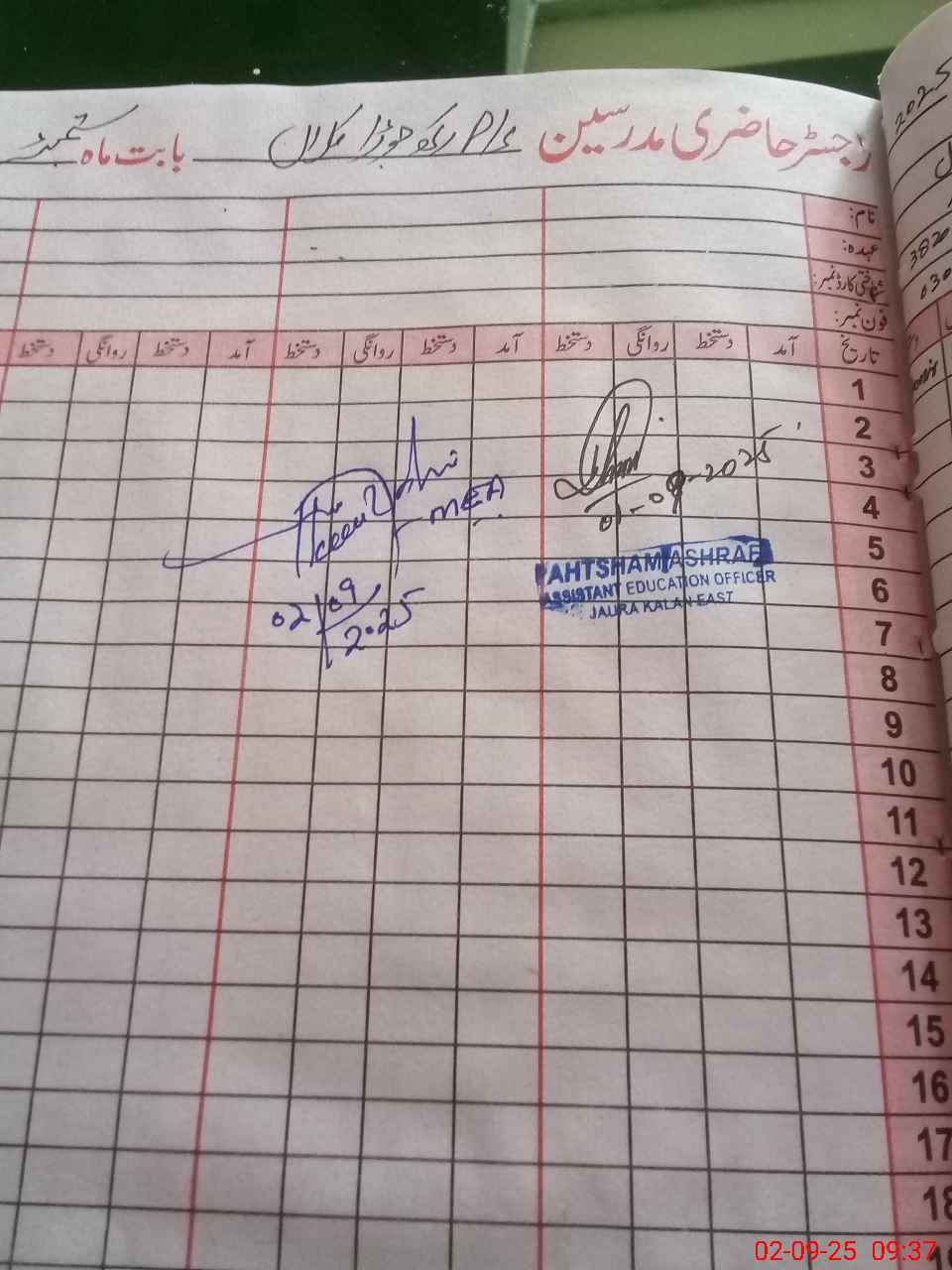 | District: KHUSHAB | Tehsil: NOORPUR THAL | Markaz: JURA KALAN (EAST) (MALE) | Level: Primary | |