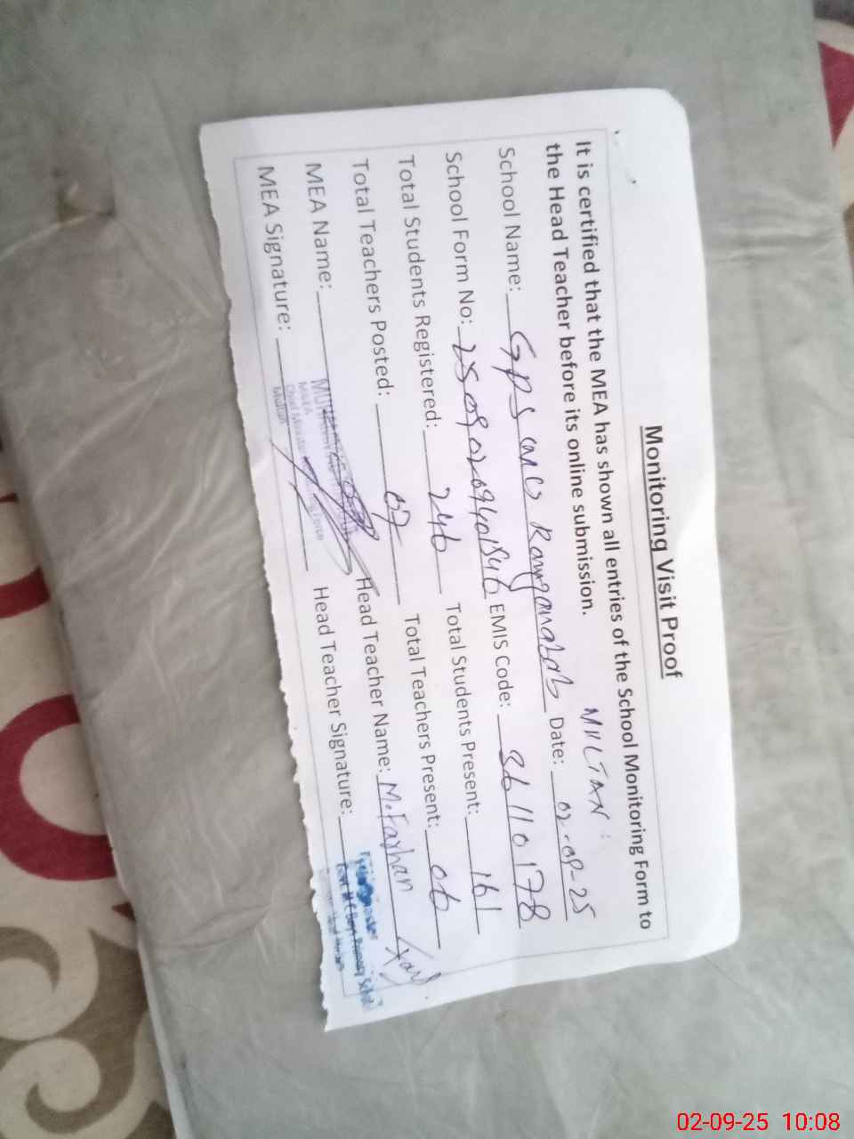 | EMIS Code: 36110178 | Name of School: GPS MC RAMZAN ABAD MULTAN | |||