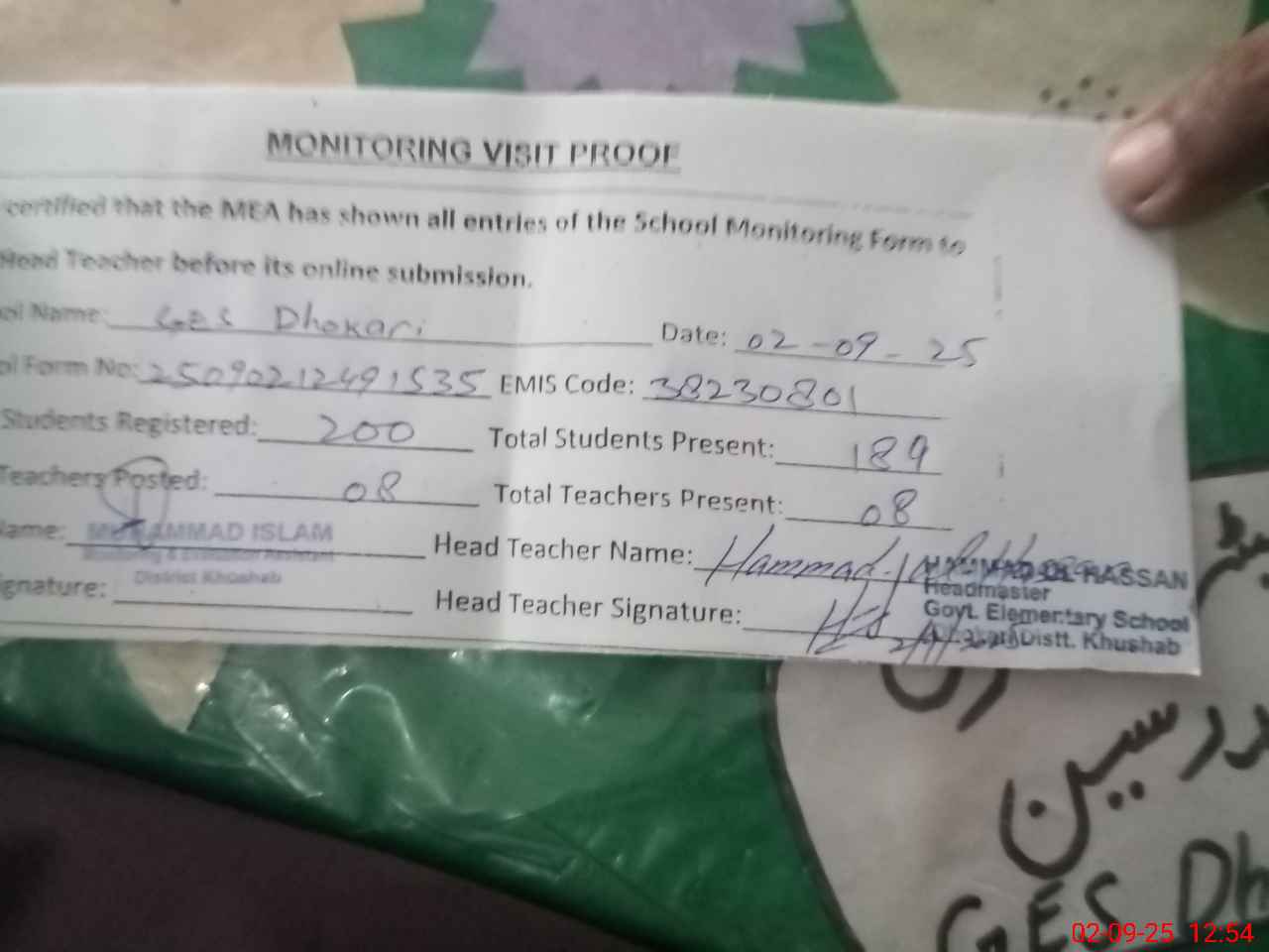 | EMIS Code: 38230801 | Name of School: GES DHOKARI | |||