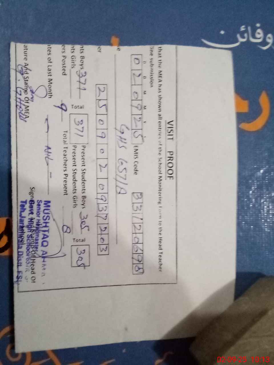 | Certified that this School was Inspected by the Undersigned MEA/DMO Today and the Information Stated Above is as Per Record. | |||||