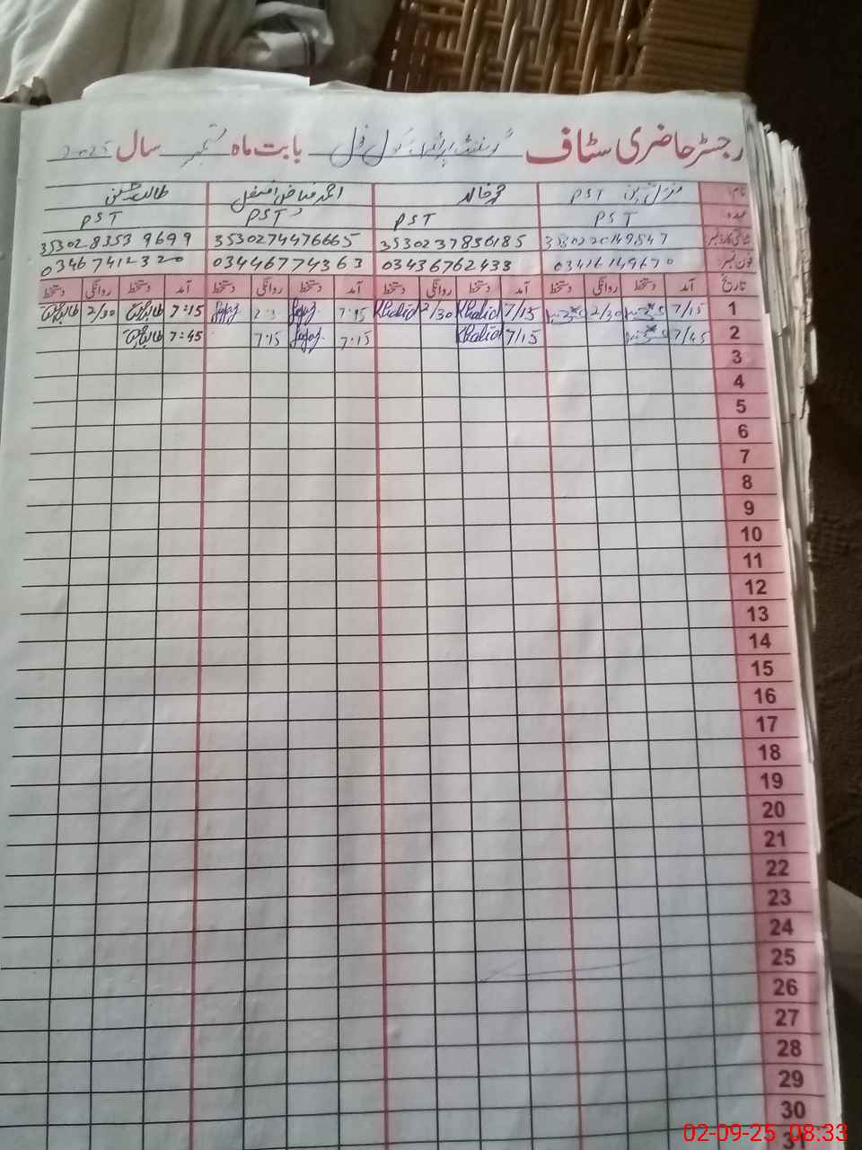 | Name: MU**** HU**** Designation: (School Headmaster's/Headmistress's) PTC/JV Phone/Cell Number: 03**** |
