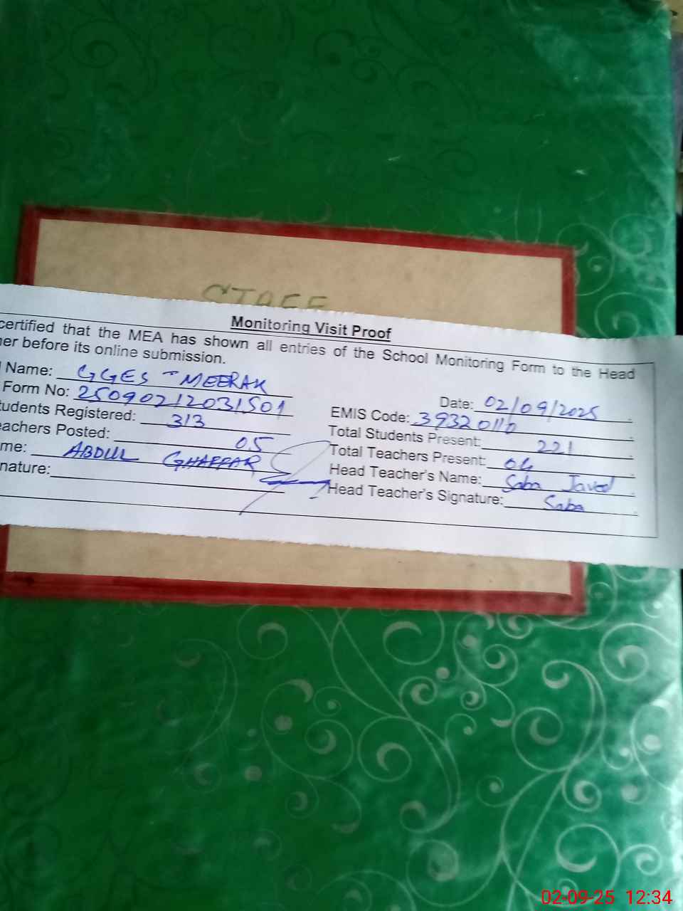 | EMIS Code: 39320110 | Name of School: GGES MEERAK | |||