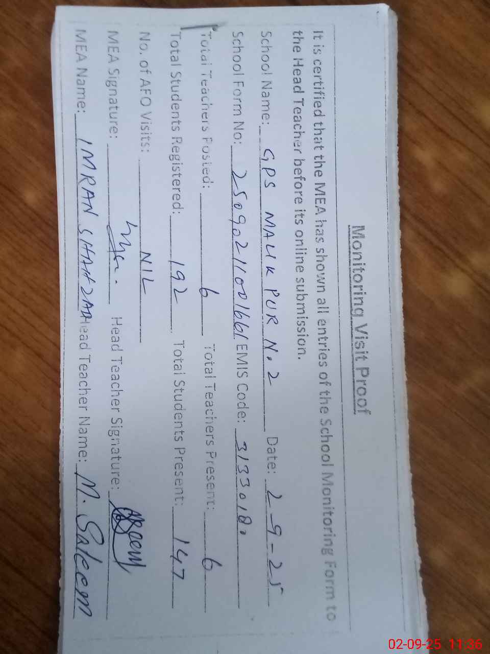 | EMIS Code: 31330180 | Name of School: GPS MALIK PUR NO. 2 | |||
