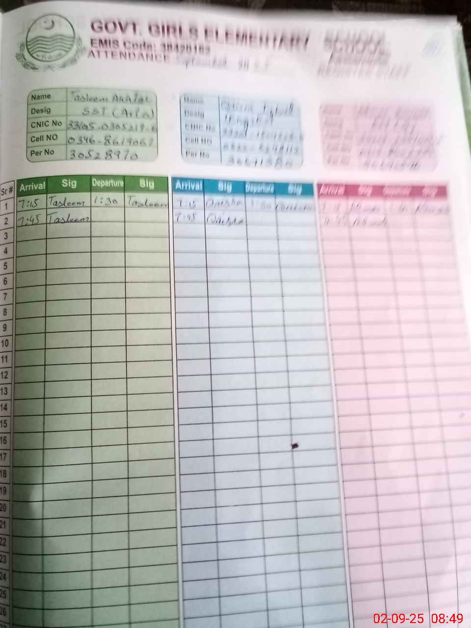 | Name: Ta**** Ak**** Designation: (School Headmaster's/Headmistress's) SST Arts Phone/Cell Number: 03**** |