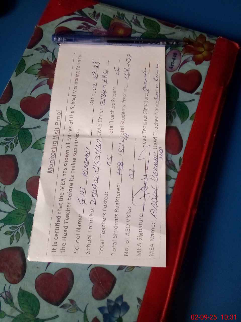 | EMIS Code: 31340784 | Name of School: GPS MOCHKI | |||