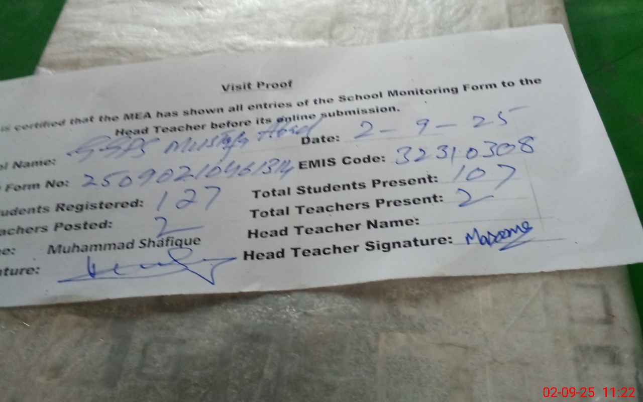 | Attendance Register | Head Teacher | MEA with School | Visit Proof |