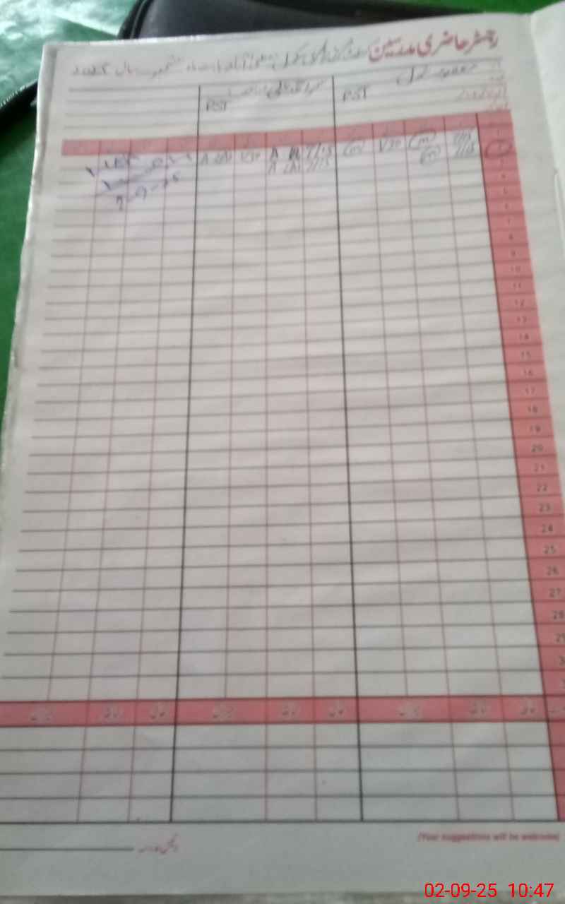 | CNIC | Full Name | Designation | R/C | Absence During Last Calender Month |
