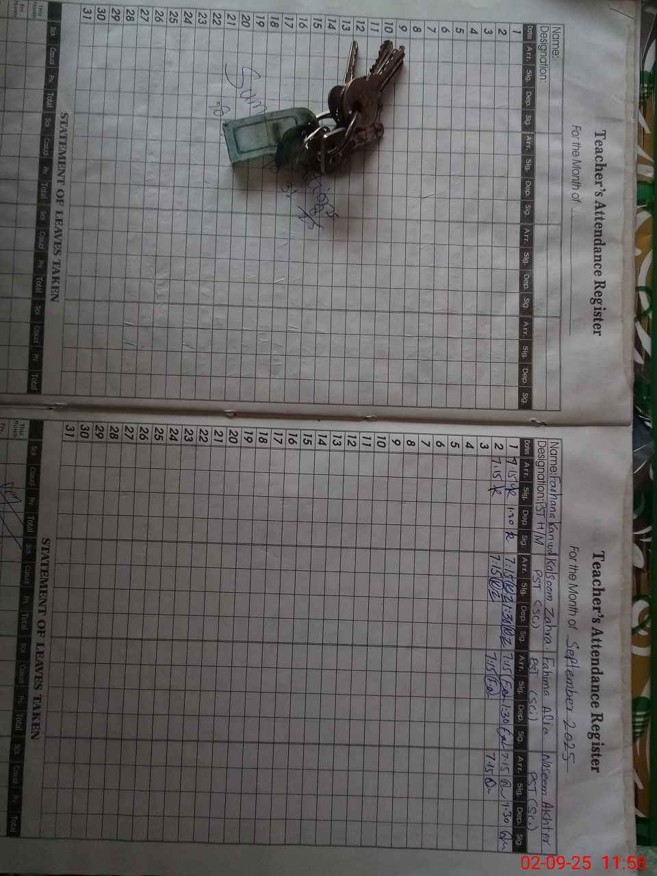| CNIC | Full Name | Designation | R/C | Absence During Last Calender Month |