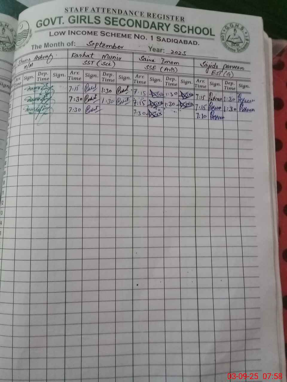 | EMIS Code: 31340392 | Name of School: GGHS LOW INCOME SCHEME NO.1 SETLLITE TOWN | |||