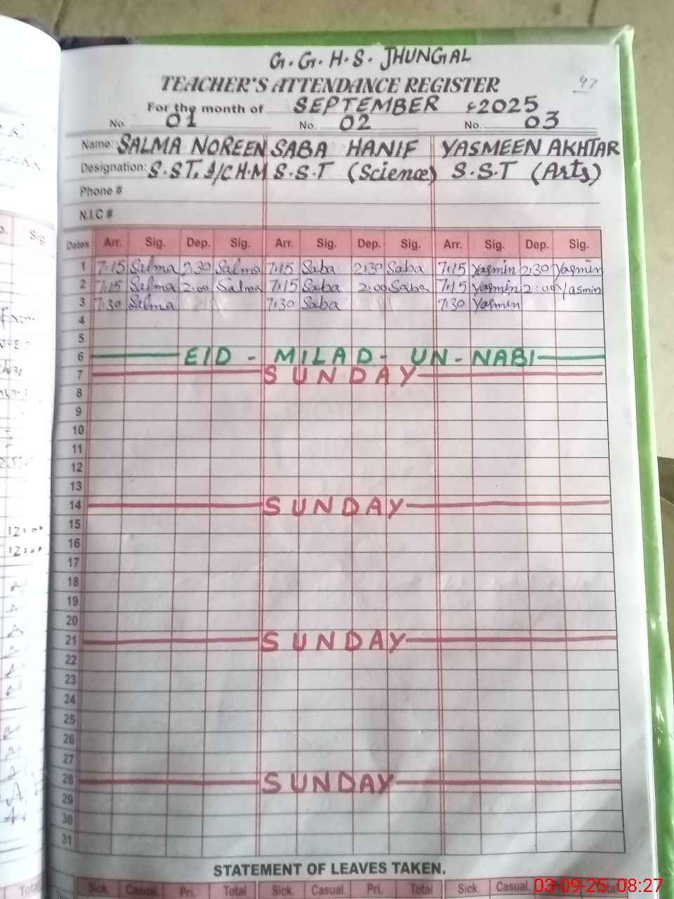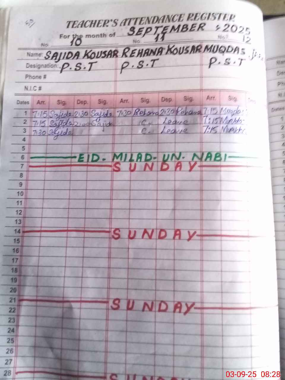 | Name: SA**** NO**** Designation: (School Headmaster's/Headmistress's) S.S.T.(SC) Phone/Cell Number: 03**** |