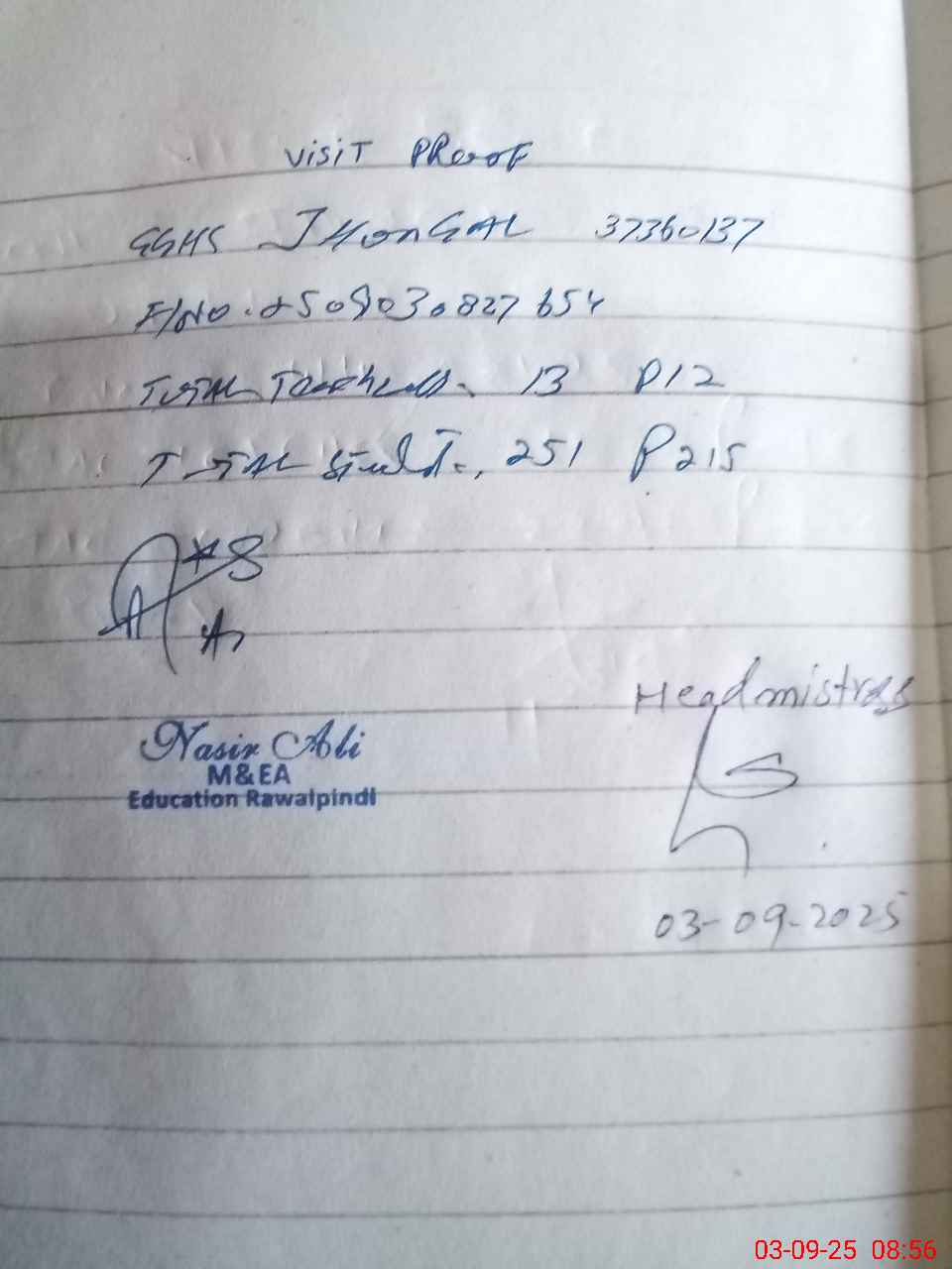 | Attendance Register | Head Teacher | MEA with School | Visit Proof |