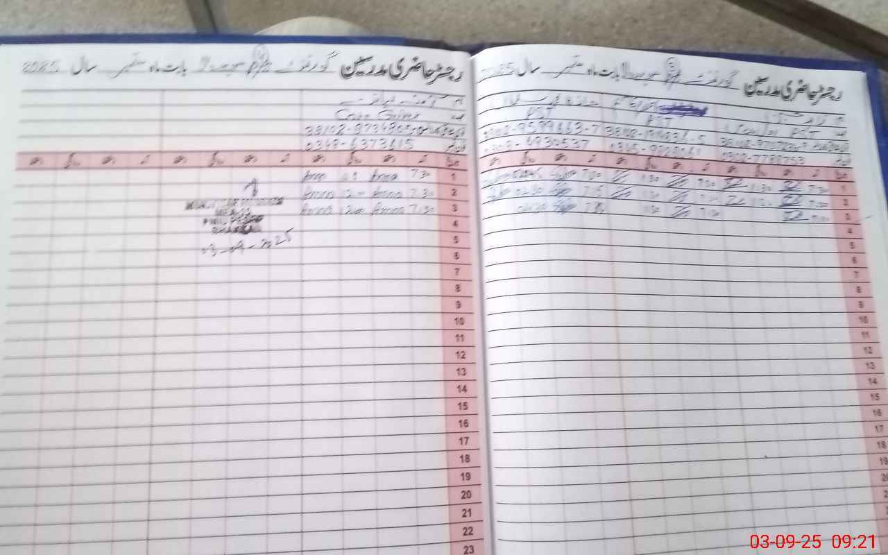 | CNIC | Full Name | Designation | R/C | Absence During Last Calender Month |