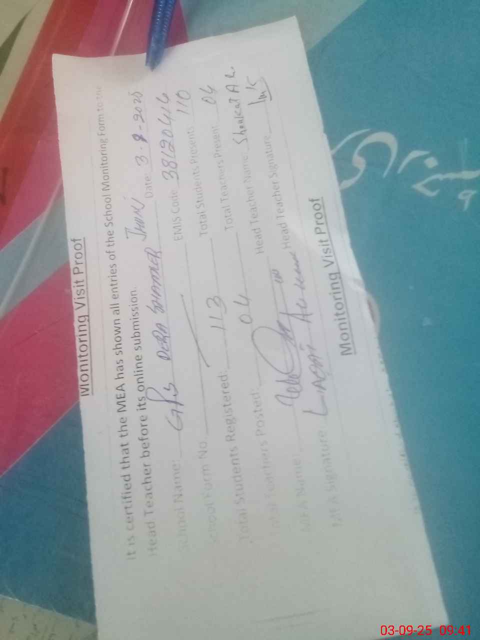 | EMIS Code: 38120414 | Name of School: GPS DERA SHAMIR JHUNJ | |||