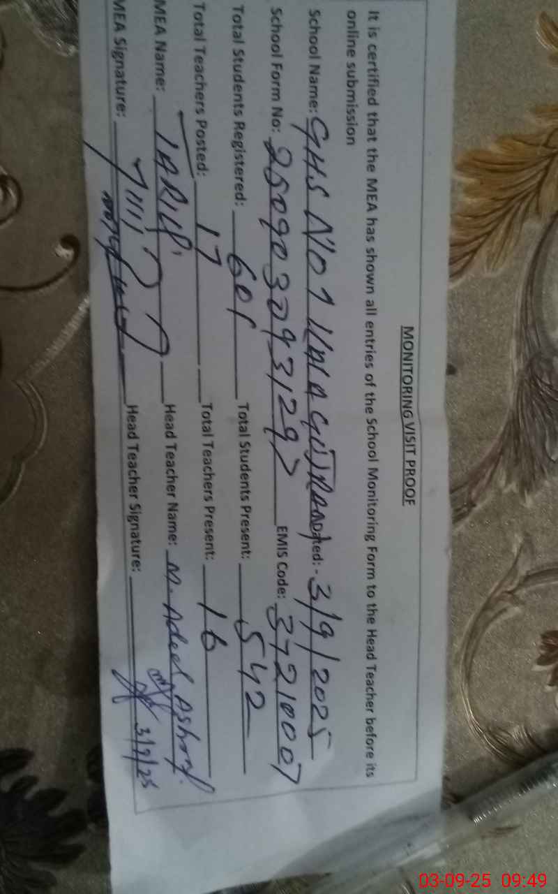 | EMIS Code: 37210007 | Name of School: GHS KALA GUJRAN NO. 1 | |||