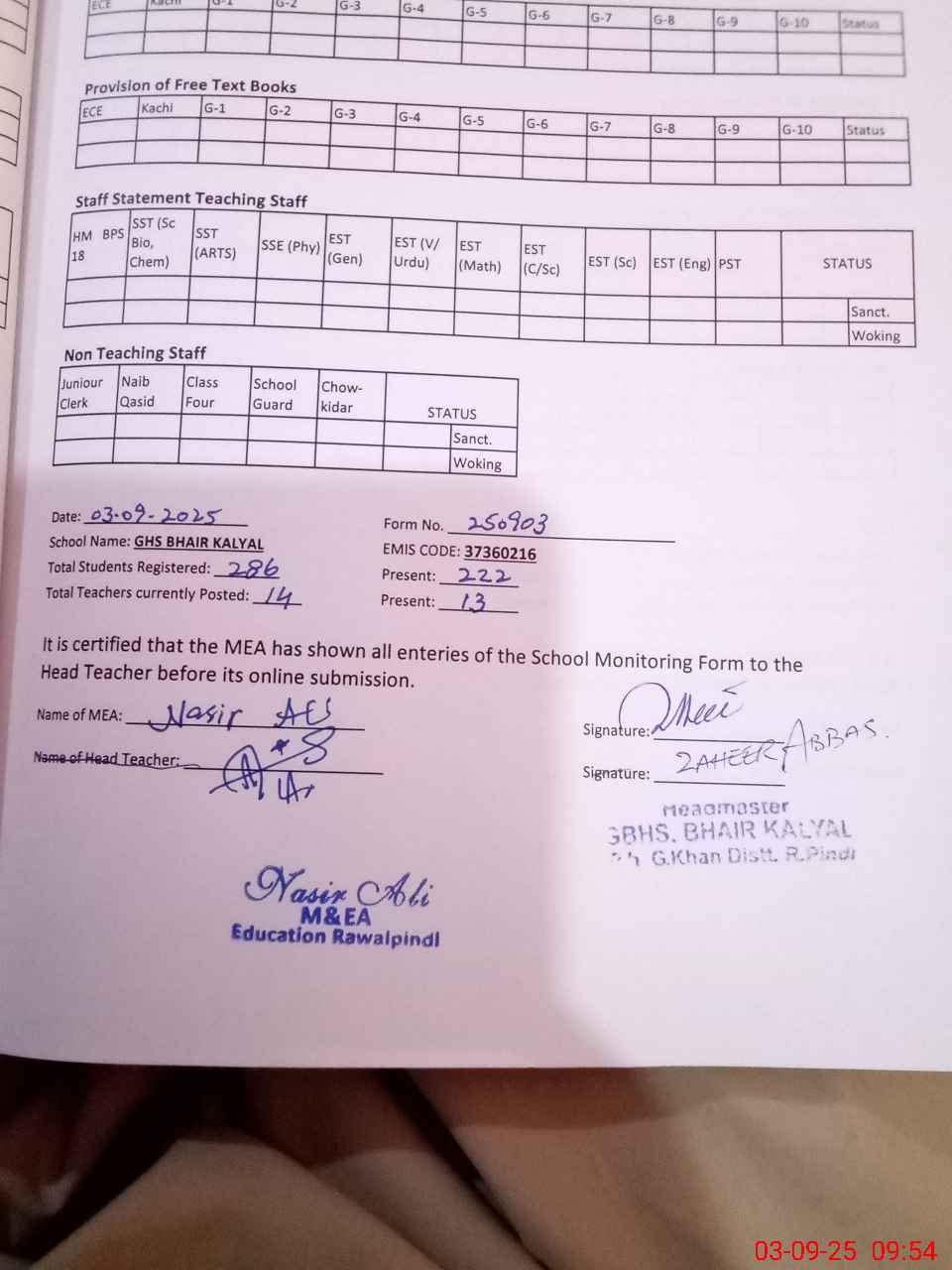 | EMIS Code: 37360216 | Name of School: GHS BHAIR KALYAL | |||