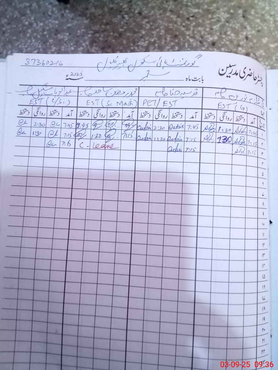 | Name: ZA**** AB**** Designation: (School Headmaster's/Headmistress's) SST Science Phone/Cell Number: 03**** |