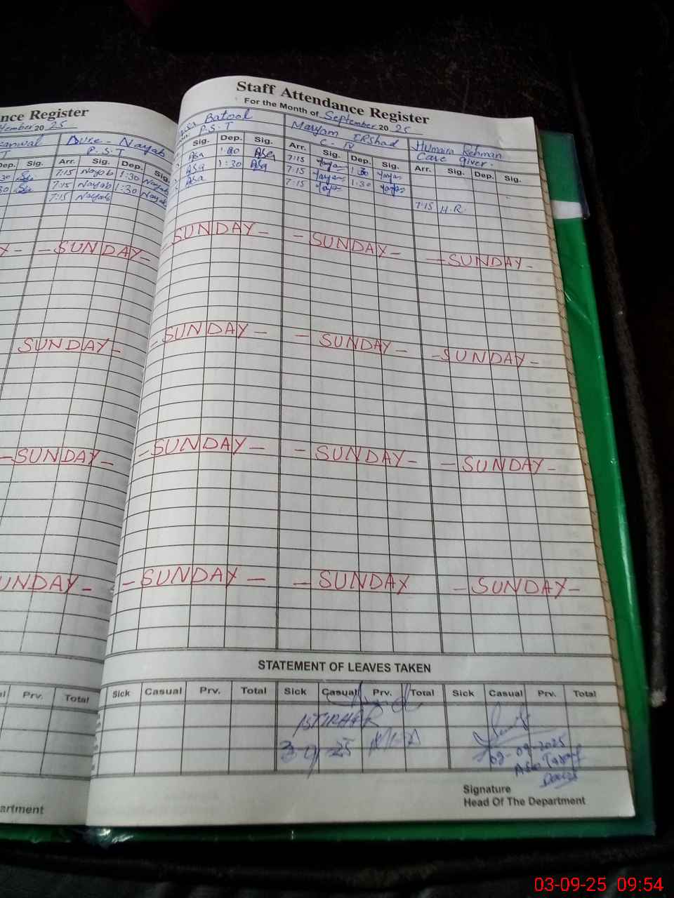 | Leave | Duty | Absent | Maternity | Medical | Ex- Pak |