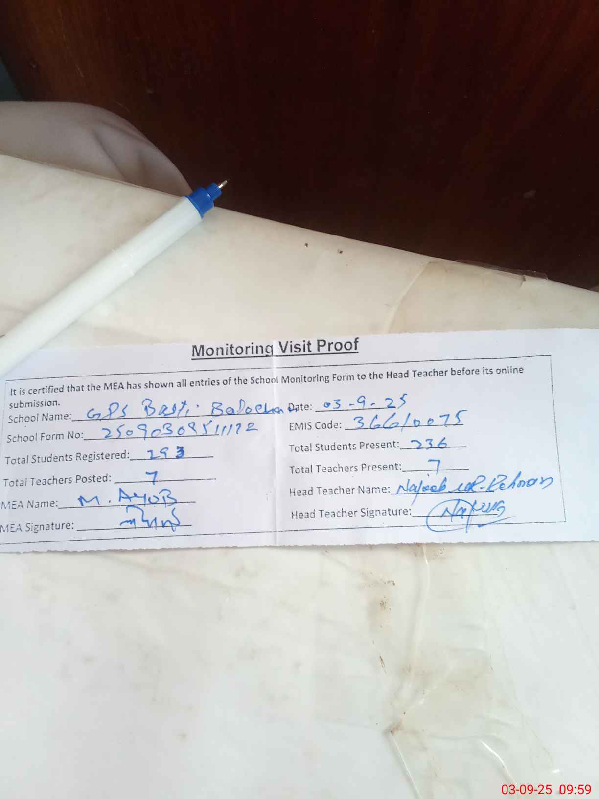 | EMIS Code: 36610075 | Name of School: GPS BASTI BALOCHAN | |||