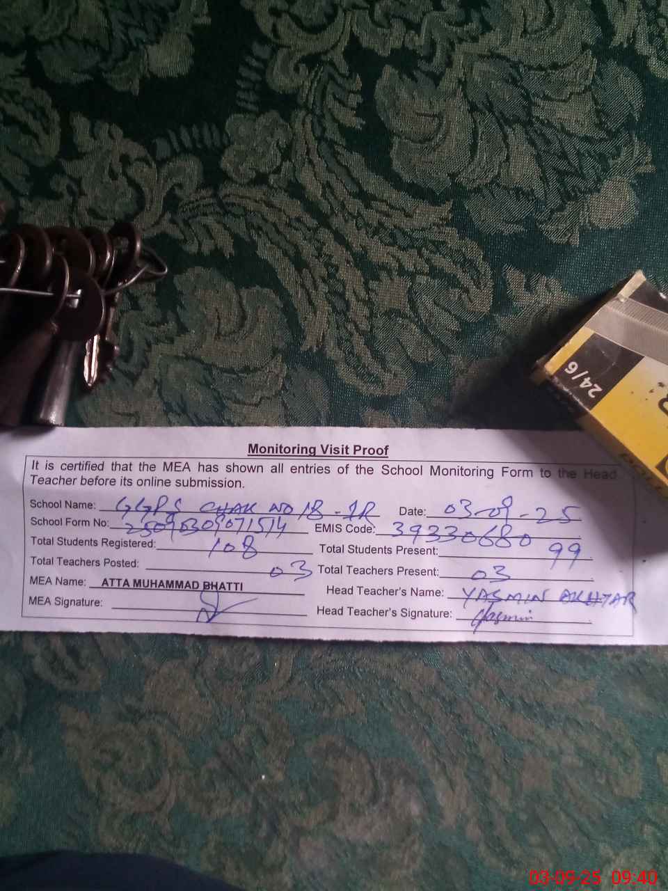 | Certified that this School was Inspected by the Undersigned MEA/DMO Today and the Information Stated Above is as Per Record. | |||||