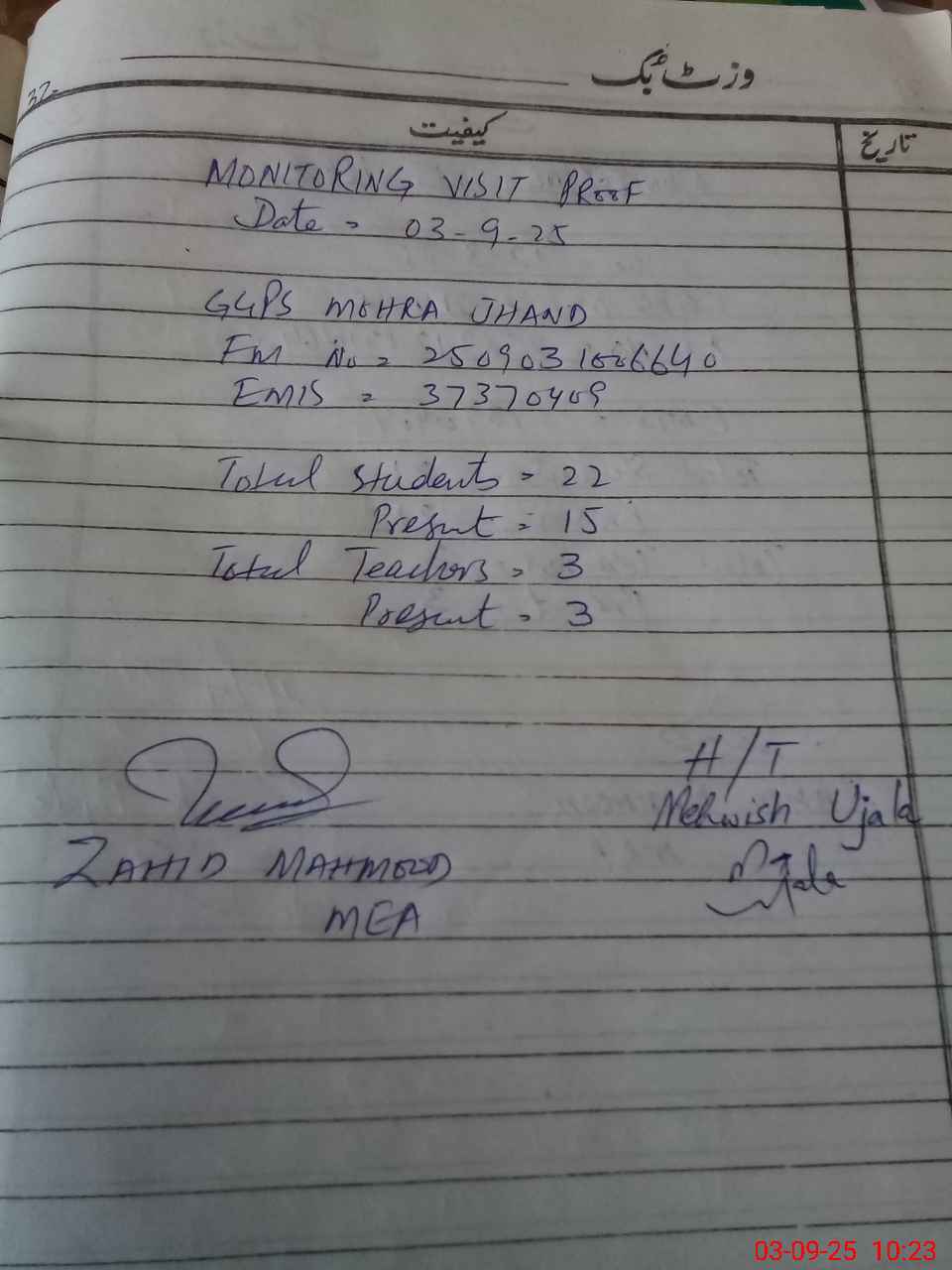 | EMIS Code: 37370409 | Name of School: GGPS MOHRA JHAND | |||