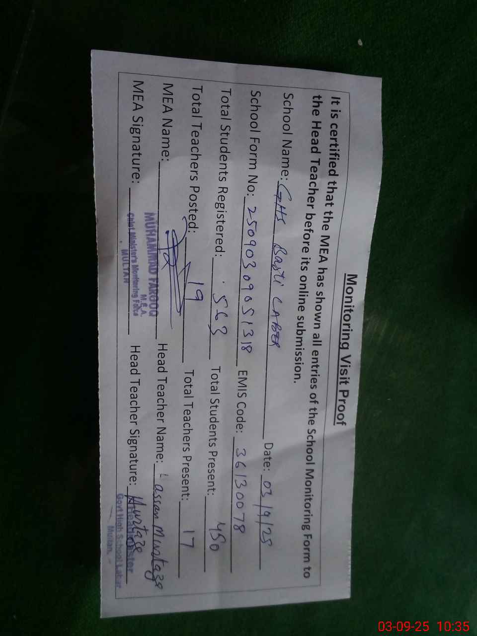 | Name: HA**** MU**** Designation: (School Headmaster's/Headmistress's) Incharge Headmaster SST GEN Phone/Cell Number: 03**** |